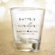 Elegant wedding shot glass with "Happily Ever After" in a mix of simple typography and a stylish script with swashes, your first names joined by a heart and your wedding date.
