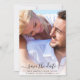 Modern and elegant save the date announcement featuring "save the date for our happily ever after" in a mix of simple typography and a stylish script with swashes overlaying your photo. Add your names and date. On the reverse side you can provide more details and add your names in a signature-like script.