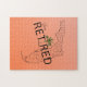 Celebrate the best years of your life with this beautiful retirement themed jigsaw puzzle. The design features a Florida state map with the saying, "Happily Retired." A tropical palm tree replaces the letter "i" in retired! The background is a contemporary orange colored gradient. Available in various size options. The puzzle is perfect for a retirement party gift, Grandparent's gift, gift for senior citizens, snowbirds, or anyone enjoying retirement in the State of Florida! Please browse our complete collection of tropical-themed retirement cards, gifts, t-shirts, home decor, and more. Special design requests accepted.