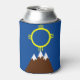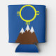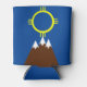 This can cooler has a Native American inspired design of mountains in brown and the sun in yellow in honor of Native American Heritage month. The mountain symbolizes destination, and the sun symbolizes happiness.