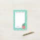 This Post-it® note pad has a southwest look complete with a cactus plant, in the lower right corner. in the background there a teal pattern and text reads, "Happiness Blooms from Within", which can be customized. There is also an area at the bottom you can customized.