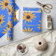 "Happiness" Bright Sun Yellow Flowers, Royal Blue Wrapping Paper