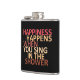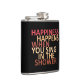 Well made flask, a little better than I had expected. Flask came in clear plastic box which gave it a nice presentation when I took it out of the zazzle packaging. Image is not printed on flask but on sticker. Don't know how this will hold up I haven't used it yet. This would make a Great gift! I plan to purchase more for friends! Cheers. I thought a little brighter than computer. Very crisp, writing wasn't
