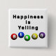 The text says "Happiness is yelling BINGO" The word bingo is spelled out on 3D bingo balls with a different coloured ball for each letter. B is red, I is blue, N is green, G is yellow, and O is purple. Got a Bingo lover in your life. This is the perfect gift for them.