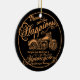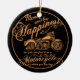 "Money can't buy happiness, but you can find it on a motorcycle, which you can buy." Fancy script and drawing of a custom bike, black & orange, on t-shirts and gifts.