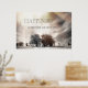 Grainy trees derived from an infra red photograph, on a bleak pastel sepia windswept plain. An inspirational saying to appeal to the explorer in all of us.