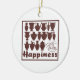 Lightweight, smooth, pure white ornament with nice sheen. Perfect size to be seen from across the room ... and to attract closer inspection! Price was great for ordering enough for the whole family! Clear, bold black design just as requested. Matches the order exactly. Just so nice!