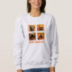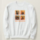 Keep warm and celebrate halloween with this unique sweatshirt featuring four traditional halloween images on one shirt; a black cat, skeleton of a hand, scary pumpkin face and a witch on her broomstick. Perfect as a gift, halloween party, or trick or treat.