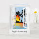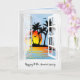 Tropical sunset scene of palm trees and sailboat in an open window for 10th anniversary.