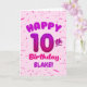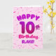 Celebrate their 10th birthday with a bright, cheerful, and personalizable birthday card! This custom name birthday card features a bold number ten balloon and colorful confetti.