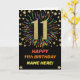 Happy 11th Birthday Black & Gold Rainbow Firework Card