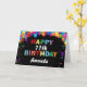 Happy 11th Birthday Colorful Balloons Confetti Black Card with personalized name. For further customization, please click the "Customize it" button and use our design tool to modify this template.