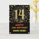 Happy 14th Birthday Black & Gold Rainbow Firework Card