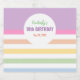 Simple minimalist design for Birthday in the center with beige background and pastel rainbow stripes pattern on the lower side, personalize this with your own text. Perfect for birthday cake topper for anyone.