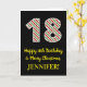 The front of this simple and fun Christmas-themed and birthday-themed December 25th birthday greeting card design features a large number "18" with a red/white/green stripes pattern, along with the message "Happy 18th Birthday & Merry Christmas,", and a custom name. The background of the front is colored black. The inside features a customized birthday greeting message, or could perhaps be cleared and left blank if a message is to be written by hand instead. A personalized birthday card like this might be a fun way to send birthday wishes to somebody who is celebrating their eighteenth birthday and who was also born on Christmas Day (December 25th). [~Z0000405]
