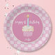 Your little girl's first birthday plates will be a sweet as her birthday cake with this watercolor cupcake design. A hand painted pink cupcake with blue candle is the centerpiece of this charming plate and the checkerboard border gives it just the right touch of whimsy for a yummy birthday celebration. This is part of the 1st Birthday Cupcake collection, look for coordinating invitations and party goods.