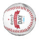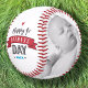 “Happy First Father’s Day.” Celebrate all of Dad’s joy of becoming a new parent. Cool, modern black, blue, and white typography on a red banner and sweet red hearts overlay a white background. Add two photos of your choice and customize the copy for the perfect, personalized keepsake baseball that he’ll treasure always. Makes a terrific Dad gift for Father’s Day!