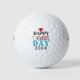 This first Father's Day golf ball features a modern typography design featuring text in red aqua blue and red accented by a heart. Designed by Susan Coffey.