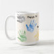 Celebrate the new dad with this whimsical child's watercolor handprints adorning this coffee mug. Happy 1st Father's Day - Daddy!