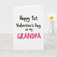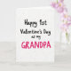This card features a simple white background sprinkled with tiny light gray specks, like soft confetti. In the center, the message reads, “Happy 1st Valentine’s Day as my GRANDPA,” laid out in a neat, balanced way. The words “Happy 1st Valentine’s Day as my” appear in black, with smooth, flowing letters that feel friendly and easy to read. “GRANDPA” stands out in bright fuchsia, written in large uppercase letters that grab your attention right away. The contrast between the black and fuchsia makes the message feel extra special, while the plain background keeps the focus on the words. It’s a meaningful card to give because it marks a new chapter and lets a grandpa know he’s loved and appreciated 🥰. It also feels like a sweet way to include family in the holiday and make him feel close to you ❤️, so you can share your Valentine’s Day sentiments.