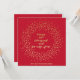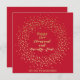 NewParkLane - Elegant personalized New Year Card, with 'happy 2024' (written fully as 'two thousand and twenty-four') in an elegant brush / script typography in faux gold, with a gold confetti wreath, against a deep red background.