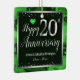Lovely red Happy 20th Anniversary ornament. Faux foil on 20th and as a border frame. Green oil background created by Valarie Wade. Tiny green heart gem in the upper corner. Names and dates are adjustable.