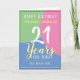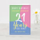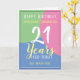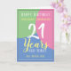 Celebrate a birthday with a personalised card showing recipient's name, number of years, and date. Add a message inside too. Birthday Card for a 21 year old.