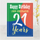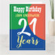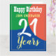 Celebrate a birthday with a personalized card showing recipient's name, and number of years. Add your own personal message inside too. 21 years old.