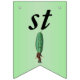 This flag shaped bunting Happy Birthday banner is green with a funny guy who has a large green pickle for a head with a surprised look on his face and is wearing a brown suit. Customize the Happy Birthday text and birthday year with the templates.