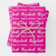 The sheets are hot pink. All of them have a text pattern for the recipient's name in a white script and the phrase Happy 21st Birthday. The name (Shown: Elizabeth) appears in an elegant white script. The other text is white. All of the text can be edited.