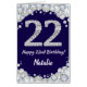 Happy 22nd Birthday Navy Blue Silver Glitter Jumbo Card