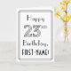 The front of this elegant 1920s/1930s art deco inspired birthday themed greeting card design features the message “Happy 23rd Birthday,” along with a custom recipient name. The number “23rd” on the front has a fancy lined appearance, and there is also a multi-line border. The inside features a custom birthday greeting message, or could perhaps be cleared and left blank if a message is to be written by hand instead. A stylish, editable birthday greeting card like this might be sent to celebrate somebody’s twenty-third birthday. [~Z0000641]