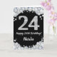 Happy 24th Birthday Black and Silver Glitter Card with personalized name. For further customization, please click the "Customize it" button and use our design tool to modify this template.