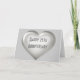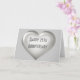 This greeting card features a silver heart with a glass-like appearance overlaid by the template text, "Happy 25th Anniversary" in a dark gray font. Click "Customize" to re-size/re-position silver glass heart, change background color and/or personalize text. Choose font style, size, color.