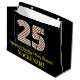 This fun and simple Christmas-themed and birthday-themed December 25th birthday gift bag design features a large number "25", with a green, white, and red stripes pattern. It also features the message "Happy 25th Birthday & Merry Christmas,", and a customizable name. The background is colored black. A gift bag like this might be a fun way to wrap gifts or presents that are being given to somebody whose twenty fifth birthday falls on Christmas Day (December 25th). [~Z0000407]