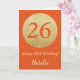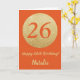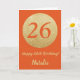 Happy 26th Birthday Orange and Gold Glitter Card with personalized name. For further customization, please click the "Customize it" button and use our design tool to modify this template.