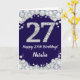 Happy 27th Birthday Navy Blue and Silver Glitter Card with personalized name. For further customization, please click the "Customize it" button and use our design tool to modify this template.