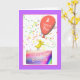 A cute and festive birthday card with a chicken character standing on a birthday cake holding a balloon that says "2 years old!". My verse inside can be changed.