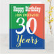 Celebrate a birthday with a personalized card showing recipient's name, and number of years. Add your own personal message inside too. 30 years old.