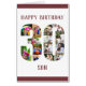 Say Happy 30th Birthday with a big birthday card and a unique photo collage. This large birthday card for your son has a big 30 filled with your own family photos. The template is set up for you to edit "son" to brother or any other name you like. You can also edit the messages inside the card. Add your photos around each number, starting from the top. "Happy Birthday" is lettered in maroon red typography. This custom photo collage contains a mixture of portrait, square and landscape shapes to give you the best chance of fitting in your favorite photos. This birthday card design is available in standard, big, large, huge and giant birthday card sizes. Please browse our store for coordinating 30th birthday gifts.