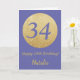 Happy 34th Birthday and Gold Glitter Card with personalized name. For further customization, please click the "Customize it" button and use our design tool to modify this template.