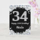 Happy 34th Birthday Black and Silver Glitter Card with personalized name. For further customization, please click the "Customize it" button and use our design tool to modify this template.