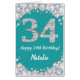 Happy 34th Birthday Teal and Silver Glitter Jumbo Card