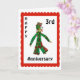 The card arrived exactly as described the only thing I didn't expect was that it was going to be a paper card. I thought from the title "faux letter" I thought it was going to be a pleather card. This is why I took off one star as well as the card being slightly bent. The paper quality is good but it should've been shipped enclosed between stiff cardboard to avoid the card being bent during the shipping process. It wasn't bent badly. I think if I place it underneath a heavy flat box it'll be okay. Ordered it on June 15th and recieved it June 30th. So I think the time it took was good considering this is a custom item. The print came out great! I just wish the material of the card wasn't paper. I bought this for my 3rd anniversary (leather anniversary) and wanted the material to be leather to keep with the theme. At least the image is of letter so that'll kind of be our little insider joke. Otherwise, the card is great and I have no complaints. Can't wait to give it to my husband.