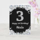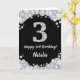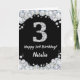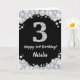 Happy 3rd Birthday Black and Silver Glitter Card with personalized name. For further customization, please click the "Customize it" button and use our design tool to modify this template.