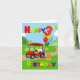 Zooming into the birthday scene, a bright red golf cart brings excitement and cheer! Up front sits a festive golf-themed cake, while the back is stacked with colorful presents and balloons topped off with a giant number 3 balloon. With bold primary colored text, this card is perfect for celebrating a little boy’s special day.