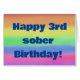 Happy 3rd sober birthday card - Congratulations on rainbow background.