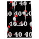 40th birthday party with bold black and white happy and number 40 text on black with party balloon bouquet.