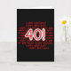 Black, red, and white Happy 40th Birthday design on 40th birthday T-shirts, cards, mugs, buttons, and other 40th birthday items.