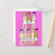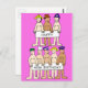 Two rows of cartoon men wearing only hats stand holding banners that say 'Happy 40th birthday'. The image is set against a bright pink colored background.